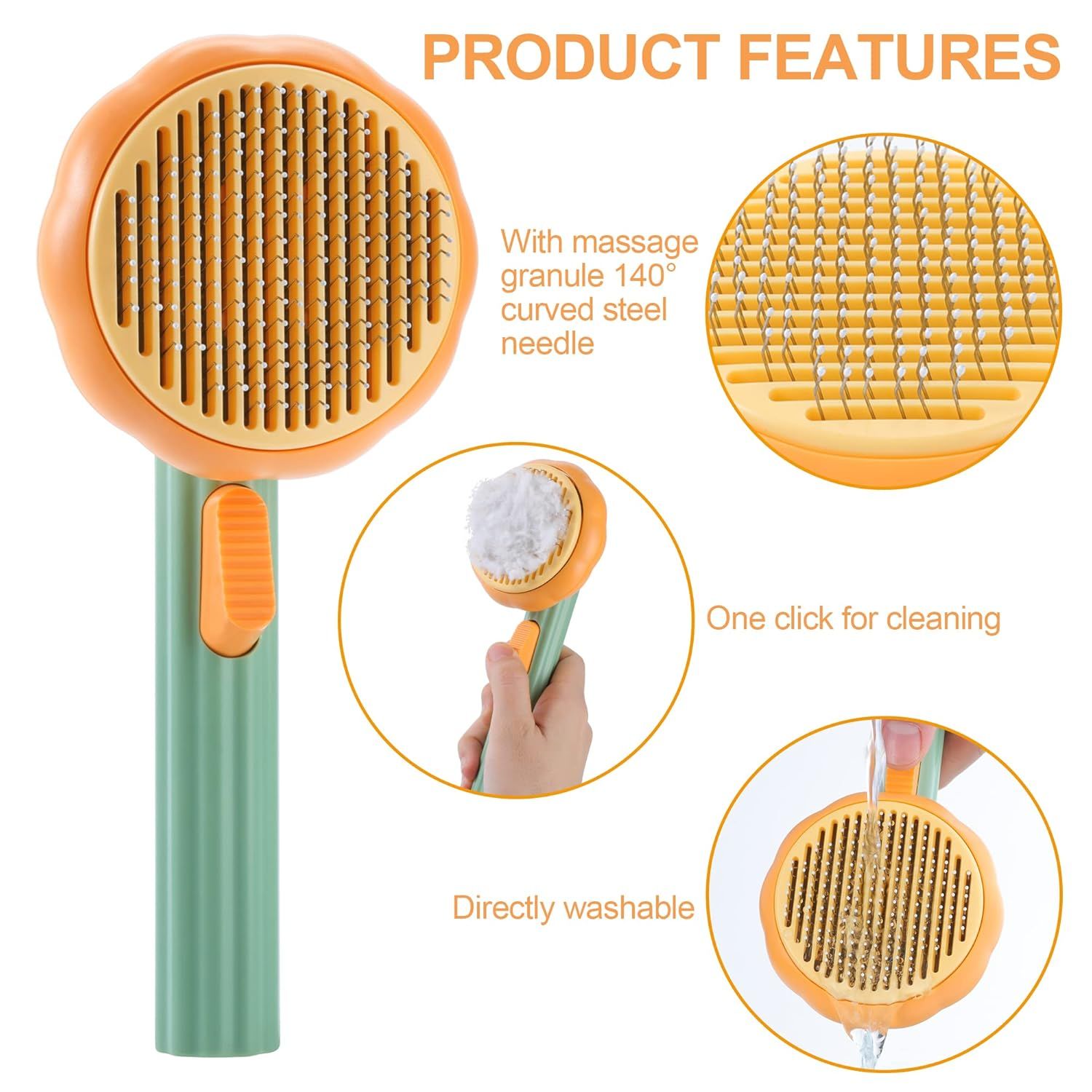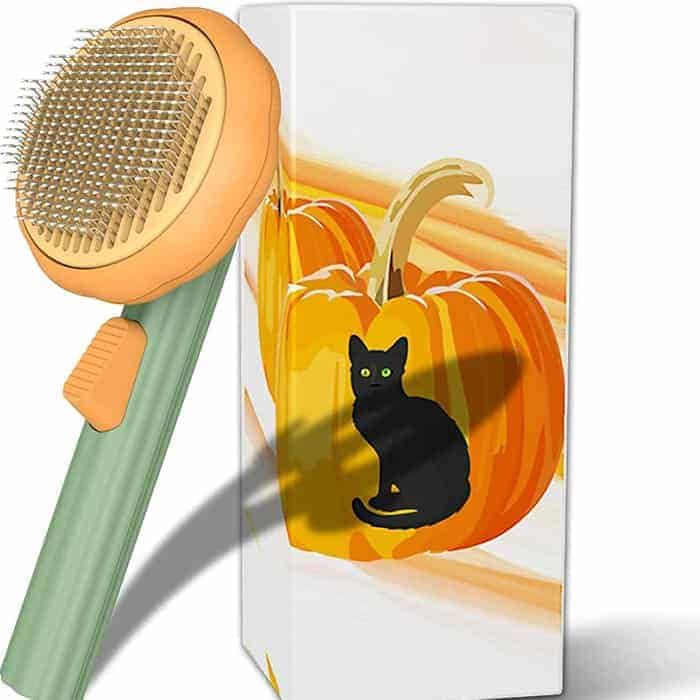 Netscroll Ergonomska samočisteća četka za pse, mačke i ostale ljubimce, četka za uklanjanje poddlake, bezbolno uklanjanje dlake i masaža, za dugu i kratku dlaku, PumpkinComb