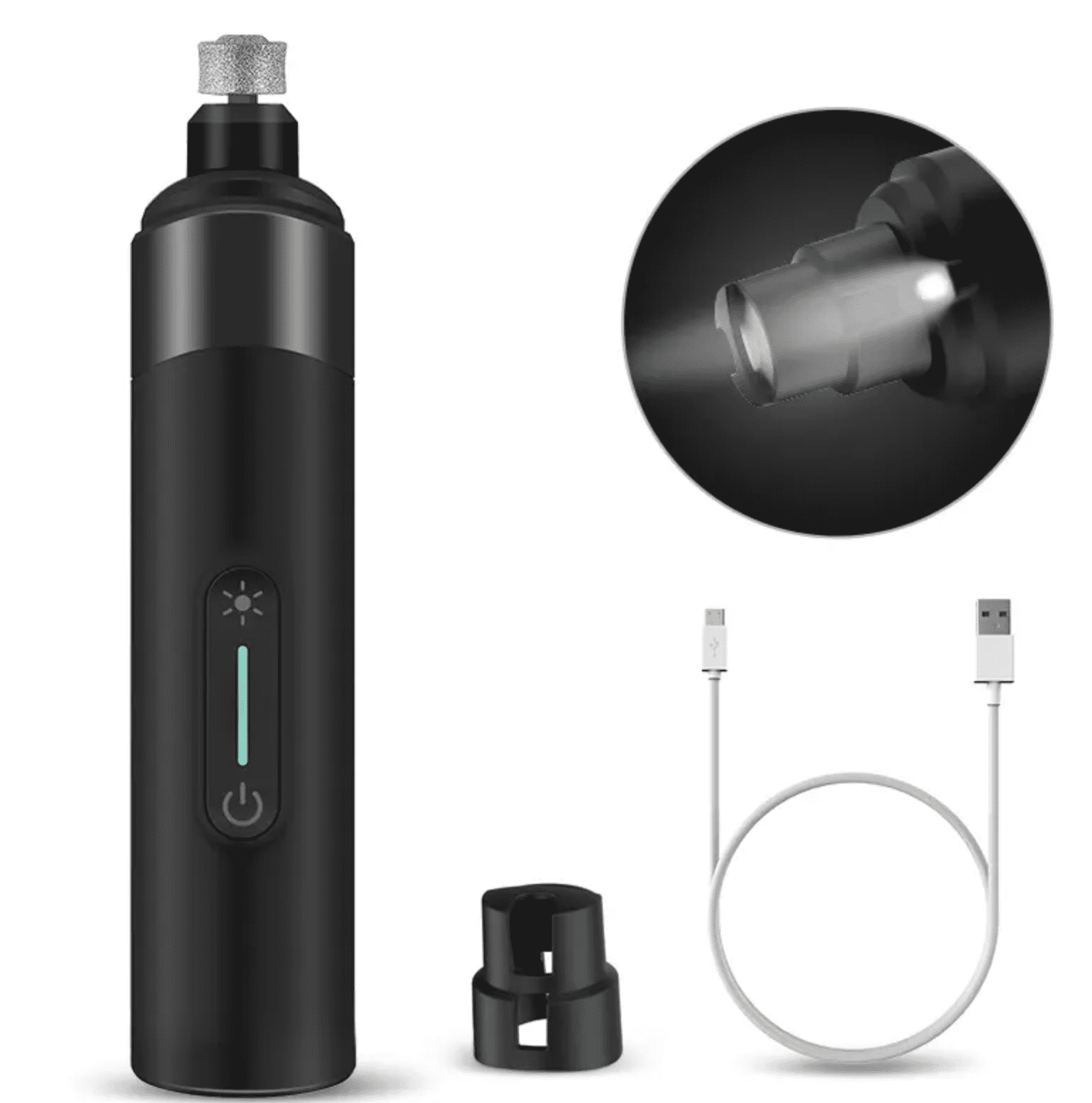 Električna brusilica za nokte za kućne ljubimce, 2 nastavka, 3 načina brzine, niska razina buke, crni dizajn, napajanje putem USB kabela. Cijeli opis