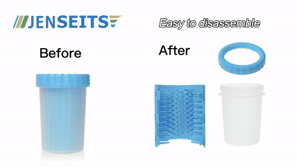 Dodajte vodu i sredstvo za čišćenje kućnih ljubimaca u čistač, umetnite blatnu šapu, okrenite je i osušite. Nakon čišćenja, izlijte prljavu vodu i očistite čašicu i silikonsku četkicu. Podijeljeni dizajn omogućuje jednostavno rastavljanje i čišćenje, osiguravajući da je šalica uvijek spremna za sljedeću upotrebu.