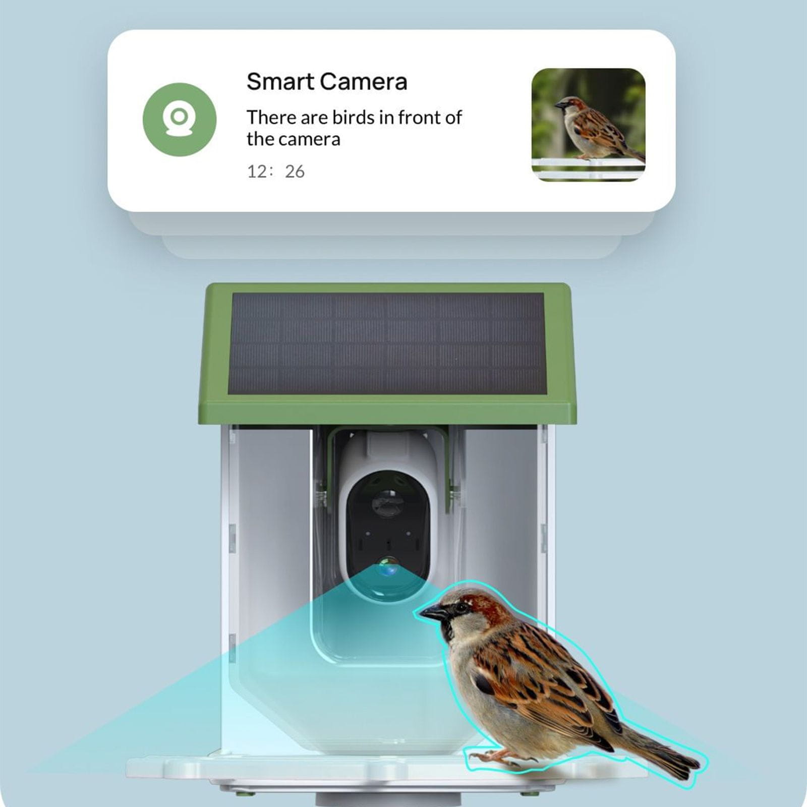 Pametna hranilica opremljena je i funkcijom inteligentne detekcije i alarma ptica, koja vas odmah upozorava na njihovu prisutnost, dok funkcija sirene učinkovito odbija neželjene posjetitelje poput vjeverica.