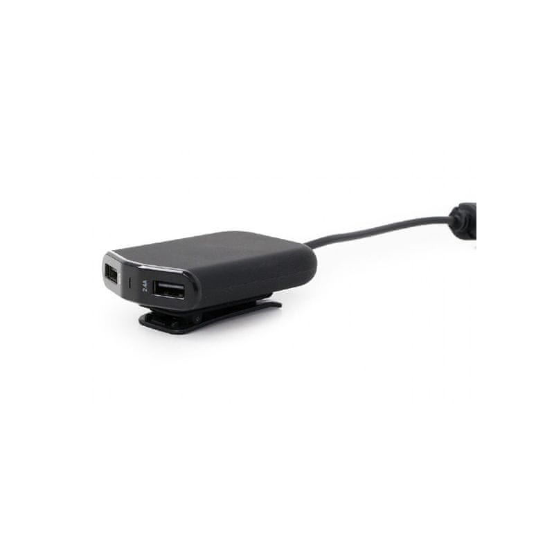 Automobilski USB punjač s 4 ulaza: 2 ulaza za prednja sjedala i 2 za putnike na stražnjem sjedalu. Inteligentni čipset za zaštitu od prekomjerne struje i kratkog spoja. Višestruko punjenje: punite do 4 uređaja istovremeno (maksimalno 2,4 A po ulazu). Ugrađeni kabel od 1,8 m za punjenje na stražnjem sjedalu.