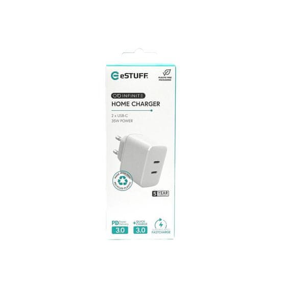 eSTUFF INFINITE punjač 2x USB-C 35W blister, bijeli, reciklirana plastika