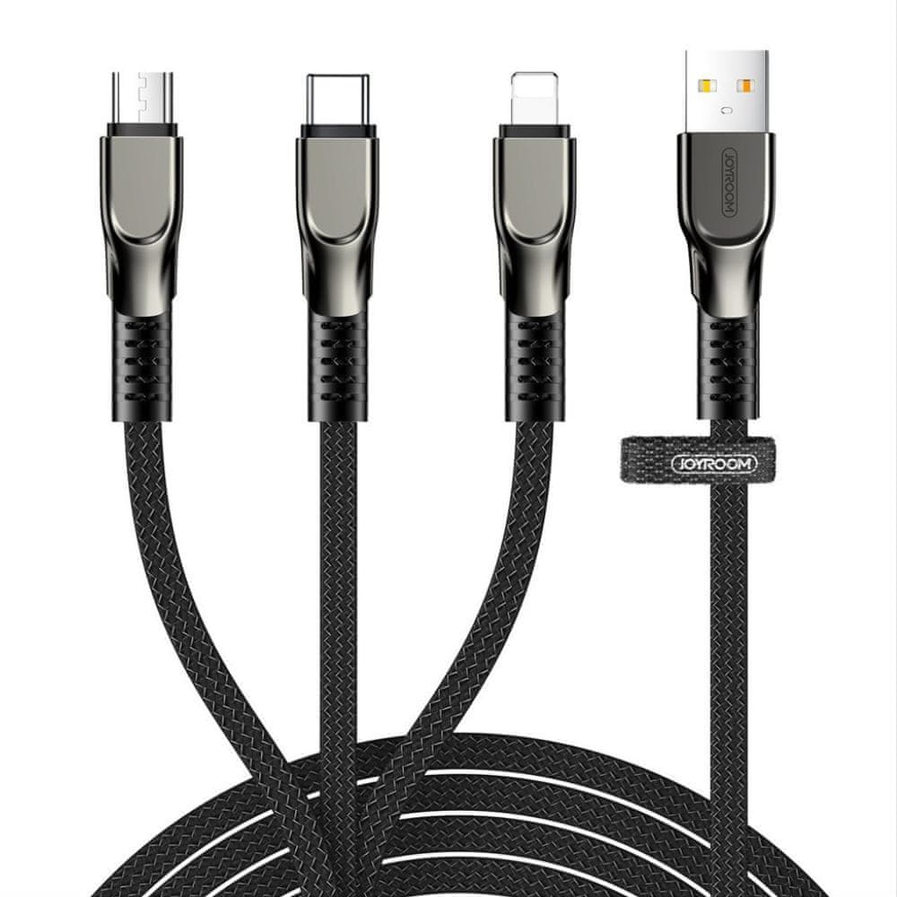 Joyroom 3in1 kabel USB - Lightning / Lightning / USB-C 3.5A 1.3m, crno