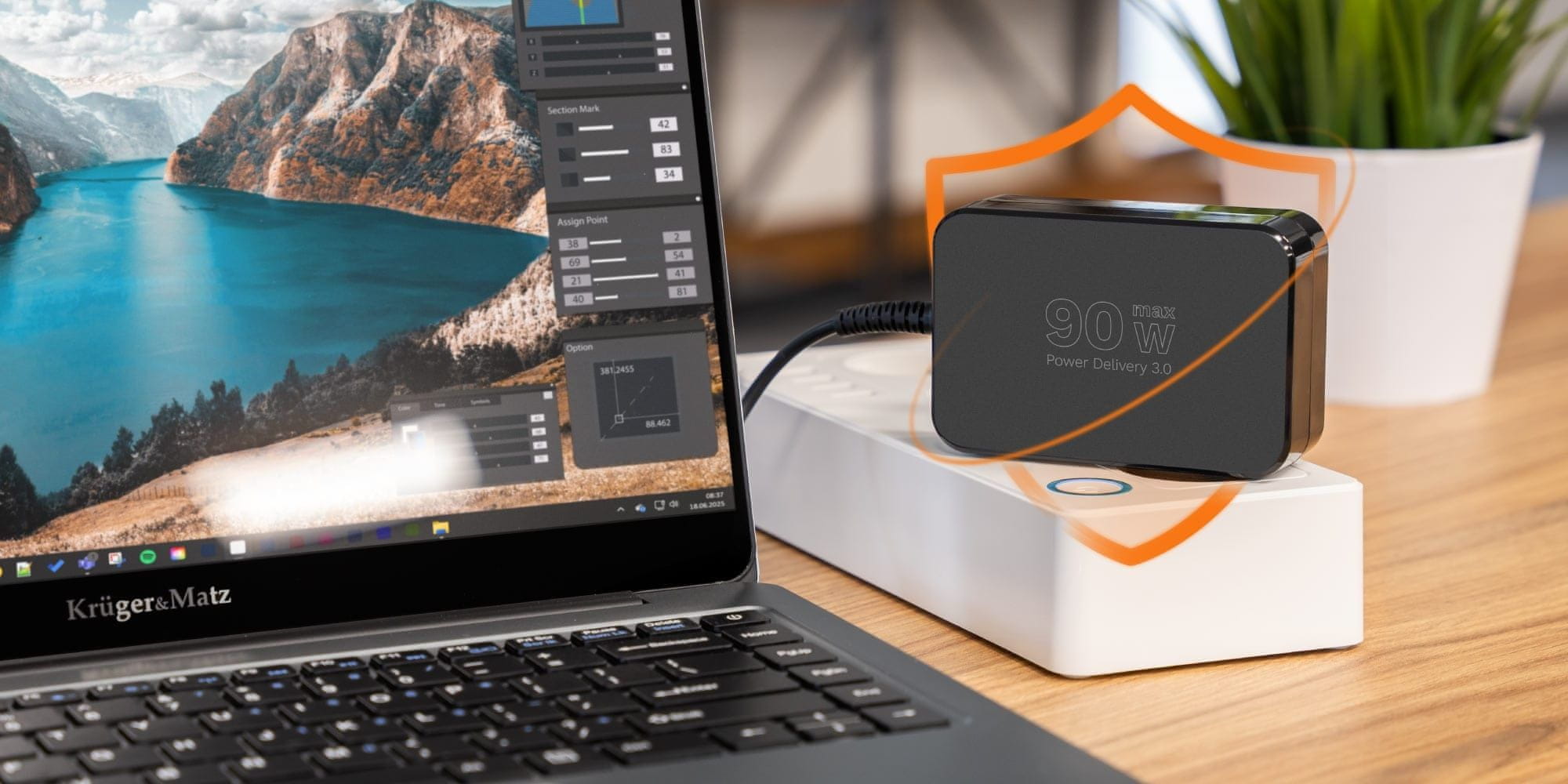 Što je veća snaga, to je brže punjenje! Ovaj adapter za napajanje od 90 W pruža učinkovito i stabilno napajanje za prijenosna računala i mobilne uređaje. Podržava Power Delivery 3.0 s naponima od 5 V do 20 V i automatski prilagođava parametre hardveru. To osigurava da će čak i zahtjevna prijenosna računala brzo dobiti povrat snage.