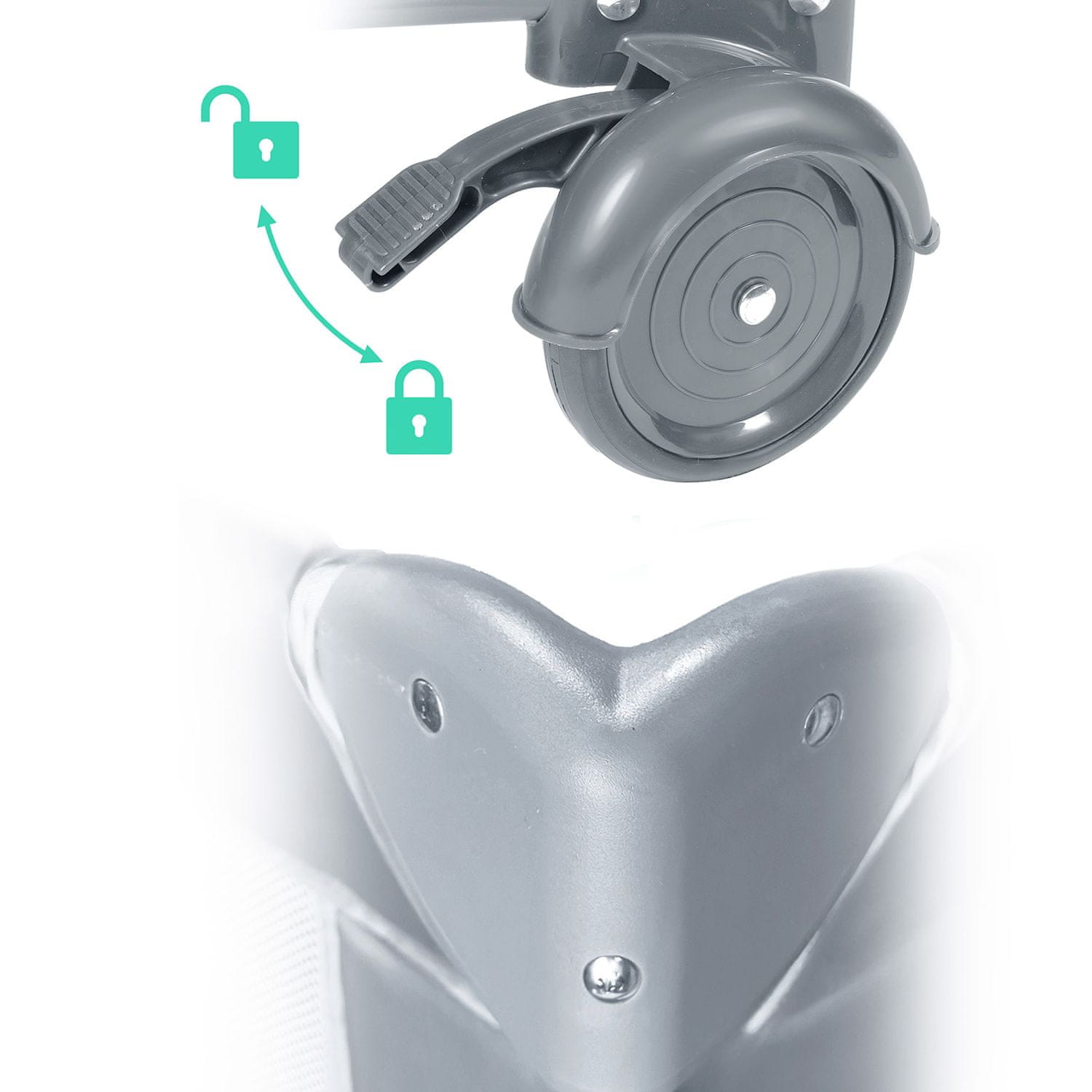 - Vrlo jednostavan za transport: 2 kotača s funkcijom zaključavanja. Osim toga, torba ima namjenske rupe za kotačiće.