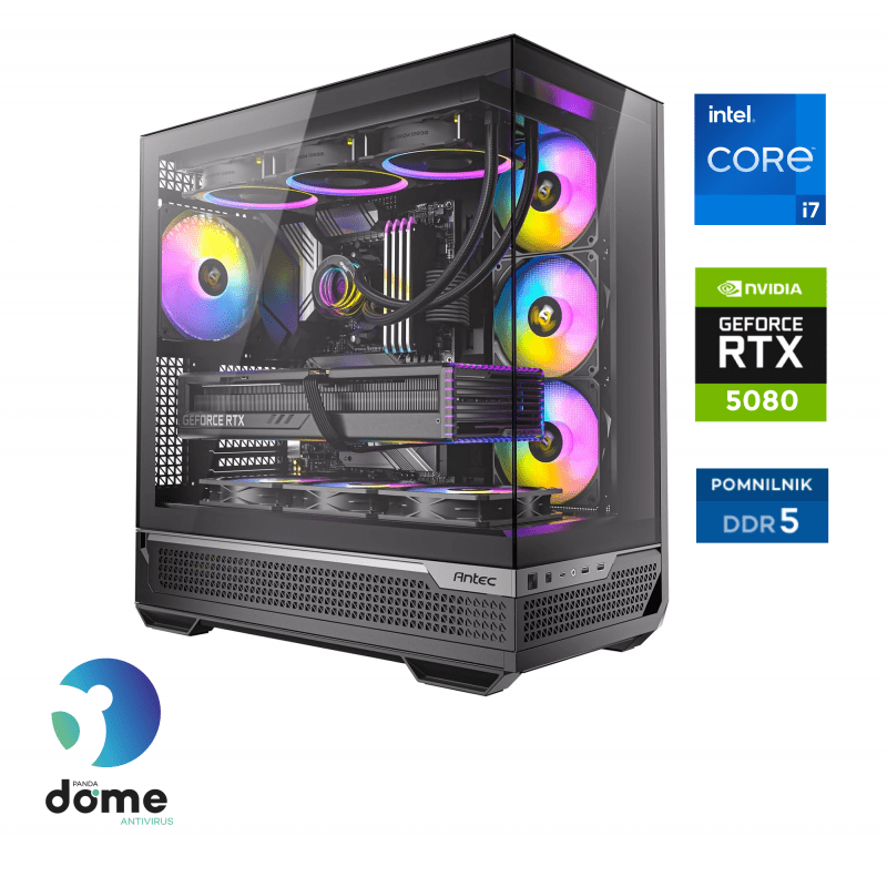 Računalo se može pohvaliti snažnim Intel® Core™ i7–14700KF procesorom i Nvidia GeForce RTX 5080 grafičkom karticom za besprijekorne performanse. 32 GB RAM-a i munjevito brz SSD disk od 2 TB osigurat će besprijekoran odziv i multitasking.