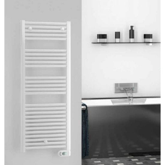 Kupaonski radijator Sanotechnik E-Innsbruck I480 u klasičnoj bijeloj boji s mogućnošću električnog punjenja i s digitalnim termostatom. Cijeli opis