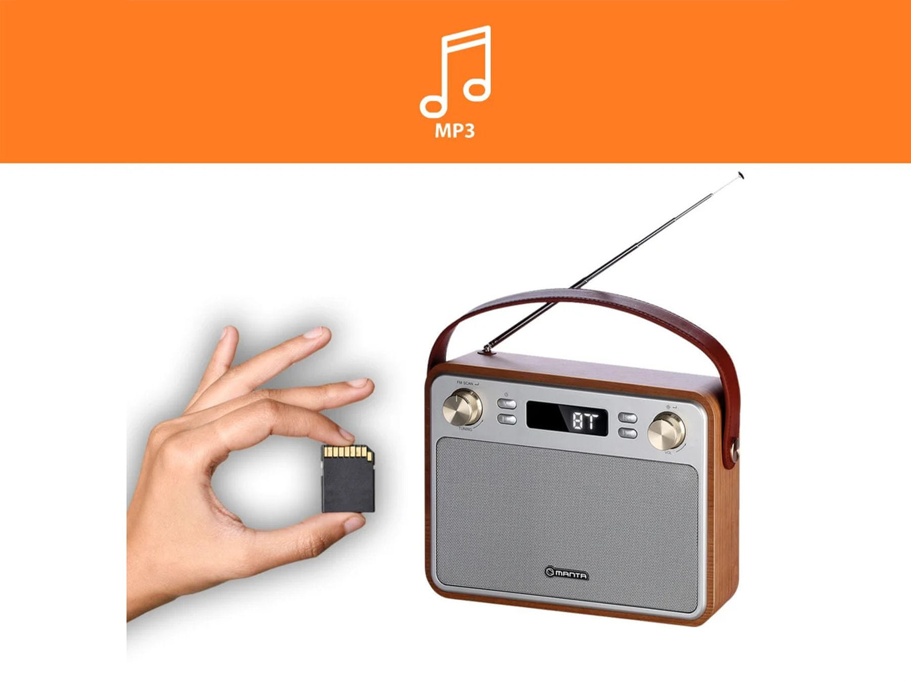 Manta retro radio RDI915X ima bateriju s 1200 mAh i radi snagom od 10 W. Ima ugrađenu ručku za lakše prenošenje. Cijeli opis