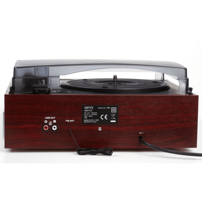 Camry CR 1113 gramofon spaja vintage mehanizam i modernu elektroniku. Reprodukuje vinile na 33, 45 ili 78 RPM, ima AM/FM radio, LCD ekran i funkciju budilice. Također omogućava spajanje vanjskih zvučnika preko AUX ulaza.