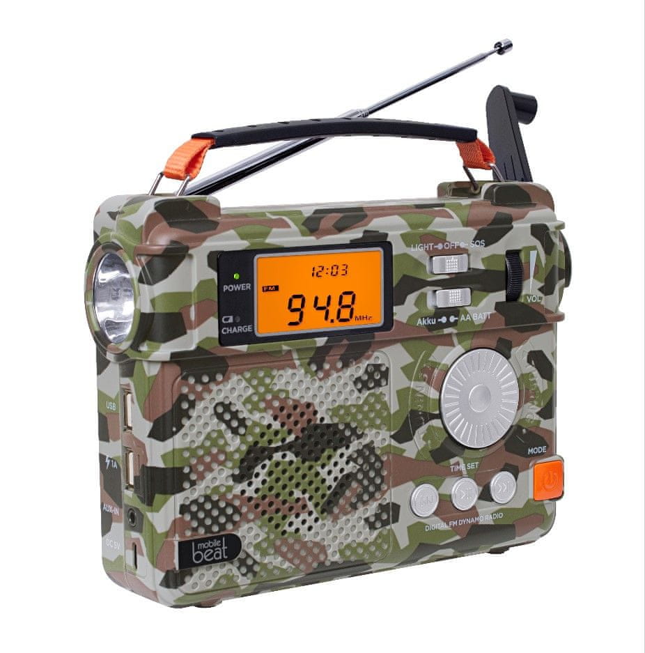 Silva Schneider SOS 223BT je svestrani prijenosni radio, dizajniran za svakodnevnu upotrebu i izvanredne situacije. Nudi FM PLL radio s digitalnim podešavanjem kanala te mogućnost reprodukcije glazbe putem Bluetootha, USB-a, AUX ulaza ili TF kartice. Ugrađena baterija od 3000 mAh omogućuje do 18 sati rada radija i do 24 sata rada svjetiljke. Također ima USB izlaz za punjenje mobilnih uređaja, sirenu za upozoravanje i snažnu LED svjetiljku. Napajanje je moguće putem USB-C kabela, dinama ili baterija. LCD zaslon prikazuje vrijeme i datum, a tekstilno-plastična ručka omogućuje jednostavno prenošenje. Kompaktan i izdržljiv model idealan je za putovanja, kampiranje i hitne situacije.