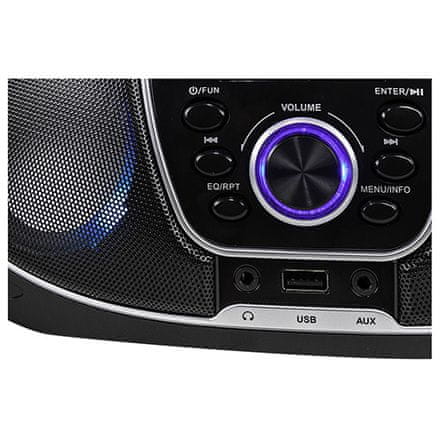 Značajke: – radio: DAB, DAB+, FM s RDS-om – memorija za 30 postaja – CD-MP3, CD-RW player – bluetooth – DOT matrični zaslon s plavim pozadinskim osvjetljenjem – svjetlosni efekti – ulazi:.