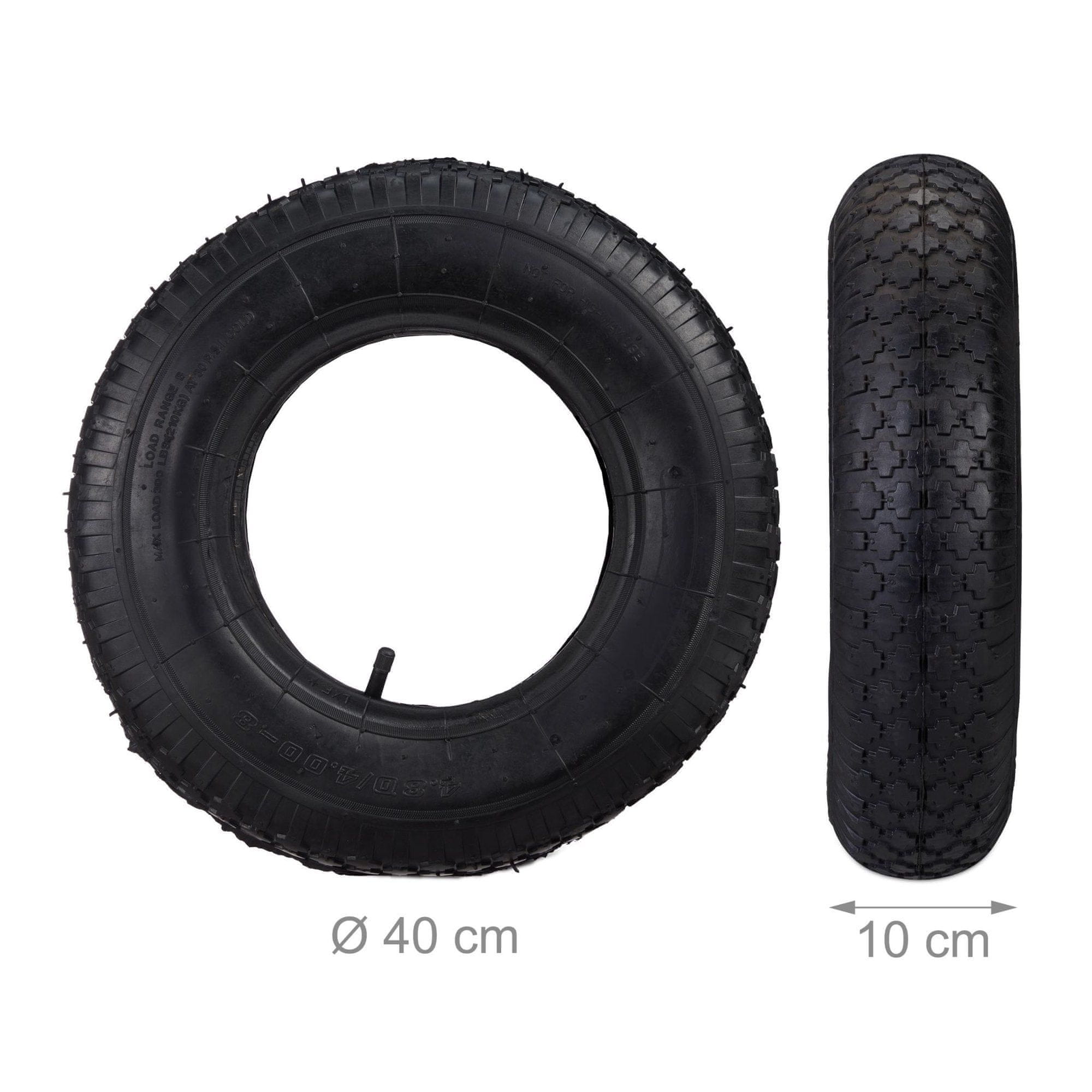 Ako se za posao oslanjate na opremu poput kolica, probušena guma će vam uzrokovati mnogo problema. U tom slučaju važno je moći odmah reagirati. S ovim kompletom rezervne gume imate zračnicu i okvir gume za kolica veličine 4.00–8"" pri ruci. Unutarnja zračnica ima automobilski ventil pomoću kojeg možete jednostavno napuhati gumu kompresorom. Zahvaljujući profilu pete, spremni ste i za neravne i skliske površine.