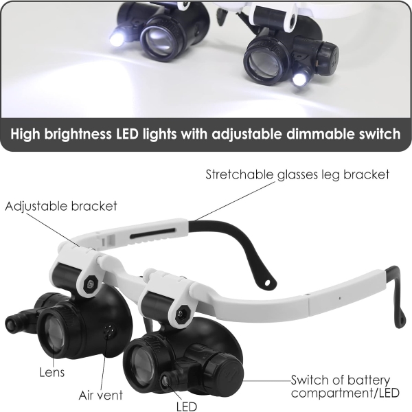 Opremljeno s dvije podesive LED svjetiljke, ovo povećalo osigurava optimalno osvjetljenje u uvjetima slabog svjetla za jasniji pogled.