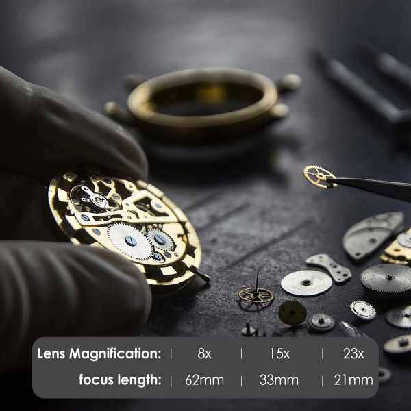 S lećama od 8×, 15× i 23×, ovo povećalo omogućuje vam lako prilagođavanje za različite zadatke, osiguravajući jasan i precizan pogled.
