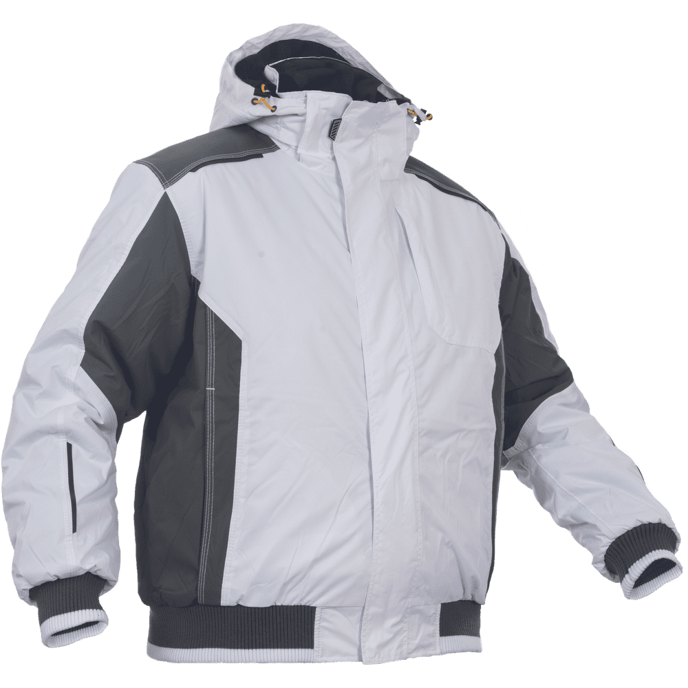 Muška zimska pilotska jakna s odvojivom kapuljačom. 1 džep na patentni zatvarač na prsima, 2 bočna džepa na patentni zatvarač, 2 unutarnja džepa na patentni zatvarač. Patentni zatvarač prekriven kopčom s čičkom, elastične rebraste manžete na rukavima i donjem dijelu. Reflektirajući detalji u tonu boje. Otvor za vez na stražnjem dijelu. Standardi: EN ISO 13688. Materijal: Gornji sloj odjeće: 100 % poliester, 120 g/m². Premaz: poliuretan. Unutarnja podstava odjeće: 100 % poliester, taft. Unutarnja izolacija odjeće: 100 % poliester, 160 g/m².