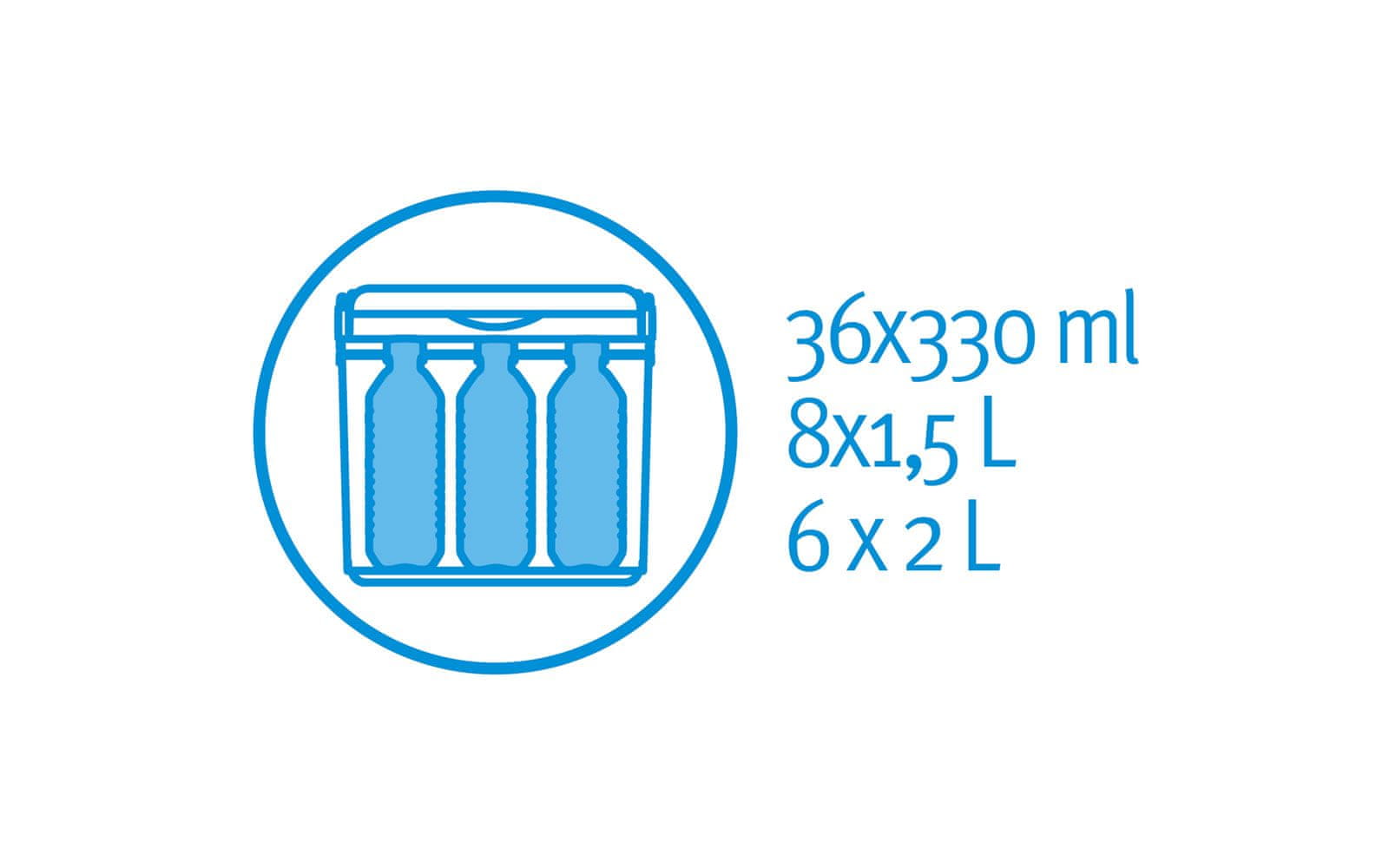 | Volumen boca | 6 × 2 l boce 8 × 1,5 l boce 36 × 0,33 l limenke |