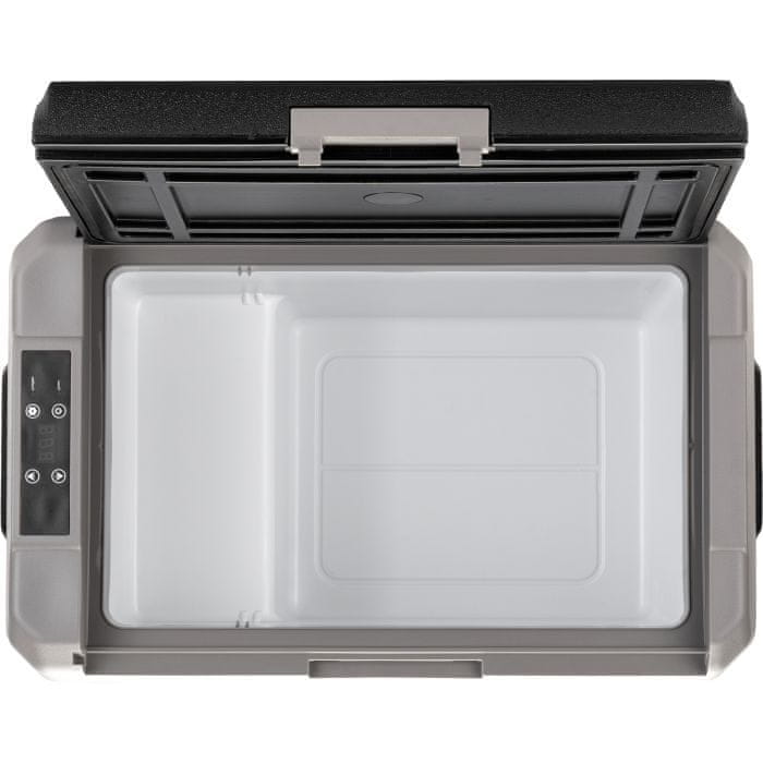 Prijenosni kompresorski hladnjak/zamrzivač s jednim odjeljkom i modernim i kompaktnim dizajnom. Opremljen je s dugotrajnim kućištem od plastike, otpornim na udarce, s visokom izolacijskom učinkovitošću i digitalnim zaslonom za kontrolu temperature.