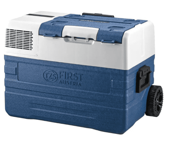 First Austria rashladna torba zapremine 52 l, podesivog kapaciteta hlađenja, niske emisije buke i praktične funkcije kolica ili ručke za nošenje. Također ima unutarnje osvjetljenje, način zaštite akumulatora vozila i raspon temperature od –20°C do +20°C.