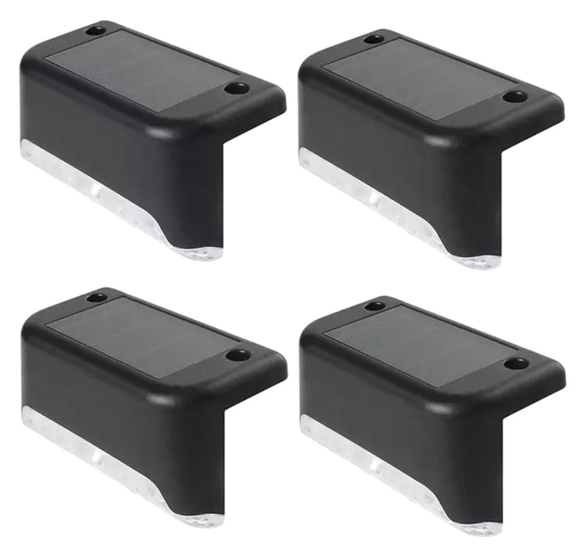Set od 4 svjetiljke za ogradu koje napaja ugrađeni solarni panel. Svaka lampa ima ugrađenu bateriju koja se puni sunčevom svjetlošću, nije im potrebno dodatno napajanje. Opremljen svijetlim, hladno bijelim LED diodama. Lampe imaju senzore za sumrak koji automatski pale LED nakon sumraka. Vrlo jednostavna instalacija – hardver za montažu uključen.
