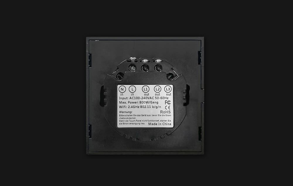bojacrnaBroj gumba1nazivna snaga800W/kanalNazivna struja10Ulazni naponAC 110–240 V, 50/60 HzPotrošnja energije u stanju mirovanja0,45 W / 0,1 mAWi-Fi pojas2,4 GHz / 2,4 GHz i 5 GHzMaterijalABSMaterijal pločeKaljeno stakloIIIIII86 × 86 × 33 mmPodržani sustaviiOS 8.0, Android 4.0 i novijiprimjenaTUYA / Pametan životKompatibilnostAmazon Alexa, Google Home, Yandex Alice, SmartThings