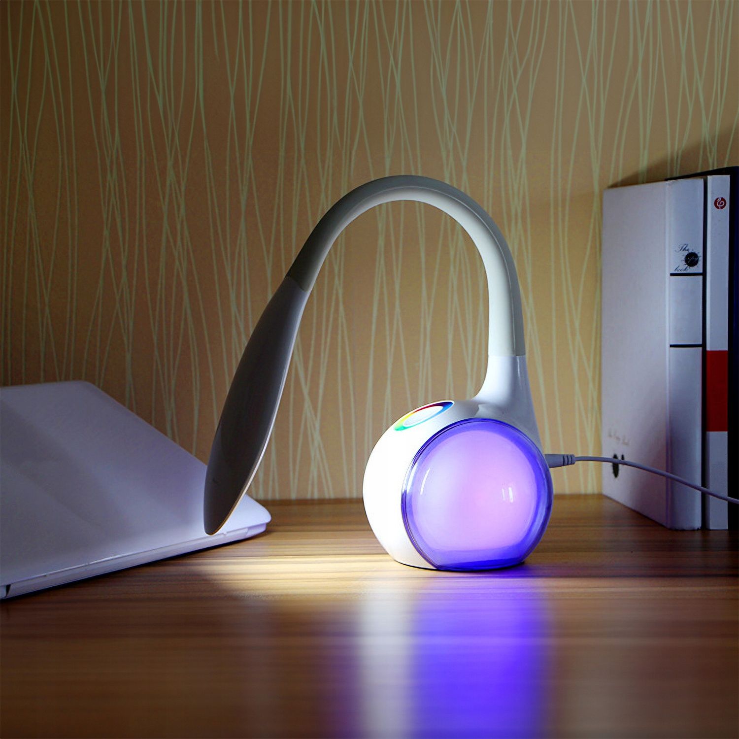 Stolna lampa ima dva neovisna izvora svjetlosti. RGB i BIJELA LED dioda. Njegova svestranost čini je savršenom kao noćno svjetlo, dječja stolna lampa ili romantični ukras.