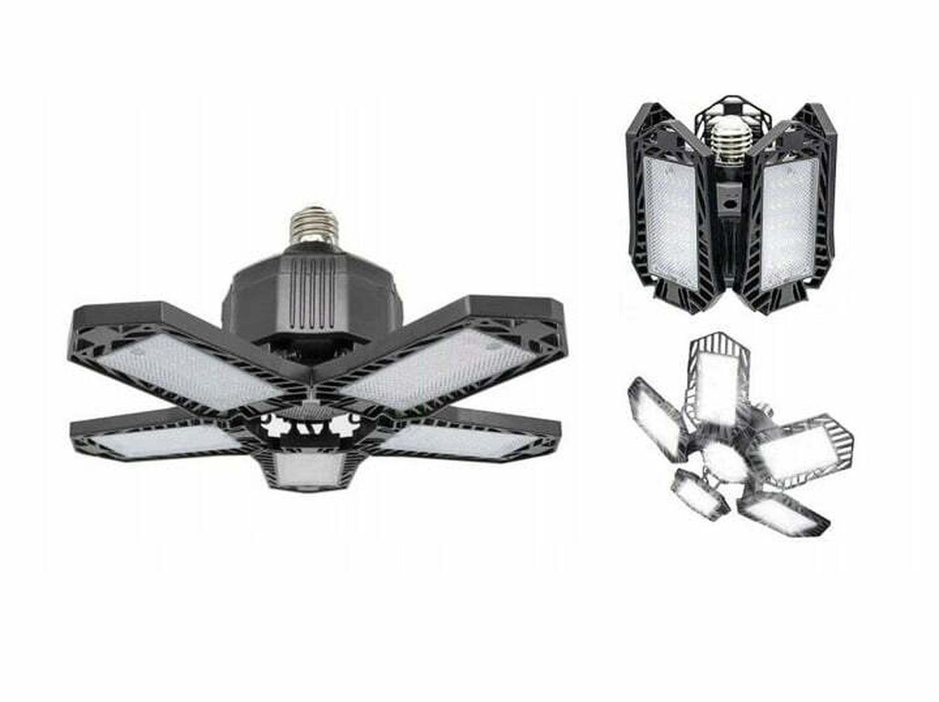 Svjetiljka daje vrlo jaku svjetlost Podešavanje kuta svjetlosnog snopa / krila: 0° do 90° Sklopiva, deformabilna svjetiljka Raspon svjetlosti može doseći 360 ° Svjetlo koje ne trepće Za stropnu montažu Korištena LED tehnologija smanjuje potrošnju energije do 85% Lampu je dovoljno uvrnuti u navoj žarulje veličine E26 / 27 Ušteda energije Korištenje LED tehnologije smanjilo je količinu žive i drugih teških metala na nulu (koji se nalaze u tradicionalnim fluorescentnim svjetiljkama). Za samoudruživanje Za unutarnju uporabu Spojen izravno na električnu instalaciju Snažna rasvjeta uz nisku potrošnju energije Specifikacija Vrh diode: SMD LED Boja svjetla: 6000–6600K / Bijela zima Svjetlosni tok: 12000 lm Ušteda energije: 85% Svjetlo visoke svjetline Širok raspon svjetla Brza instalacija Unutarnje osvjetljenje Životni vijek: približno 50.000 50.000 sati ili XNUMX XNUMX ciklusa uključivanja/isključivanja Položaj zaštite: IP20 Napon napajanja: 85–265 V / AC – izmjenična struja Značajke energetskog razreda: A. Snaga: 80 W. Materijal konstrukcije: ABS + PC + aluminij Dimenzije panela / krila lampe: 11×5,5–6,5cm Širina cijele lampe: 11–27 cm (krilca sklopljena-rasklopljena) Visina lampe: 12 cm Crna boja