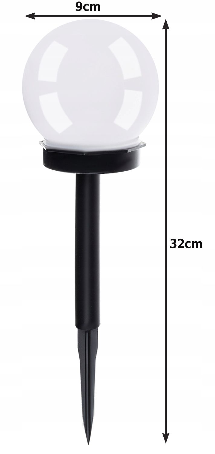 - SPECIFIKACIJA – materijal: plastika; boja svjetla: hladna bijela; vodootporan: IP 44; izvor svjetla: LED; radno vrijeme: cca 6 sati; gumb: On / Off; dužina ražnja: 10 cm; dimenzije (visina / promjer): 32×9cm; težina po komadu: 0,070 kg; težina kompleta: 0,420 kg; težina paketa: 0,667 kg.