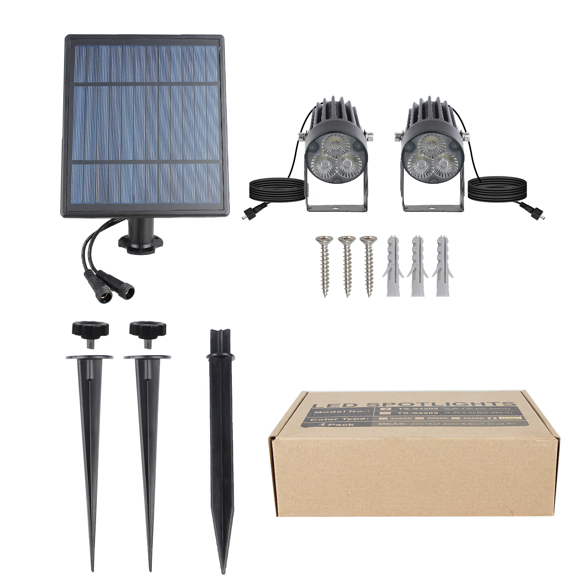 Ova solarna vrtna svjetla idealna su za osvjetljenje vašeg vrta ili terase. Njihov podesivi dizajn omogućuje vam jednostavno postavljanje na željeno mjesto. Svjetla su opremljena štedljivim LED žaruljama koje vašem vrtu daju lijepu i ugodnu atmosferu. Solarni panel puni ugrađenu litijsku bateriju kapaciteta 4000mAh tijekom dana, tako da svjetla mogu svijetliti do 8 sati nakon zalaska sunca. Zahvaljujući vodootpornom materijalu i IP65 stupnju zaštite, svjetla su pogodna za upotrebu u različitim uvjetima tijekom cijele godine. S ovim solarnim vrtnih svjetlima možete bezbrižno uživati na otvorenom i u večernjim satima.