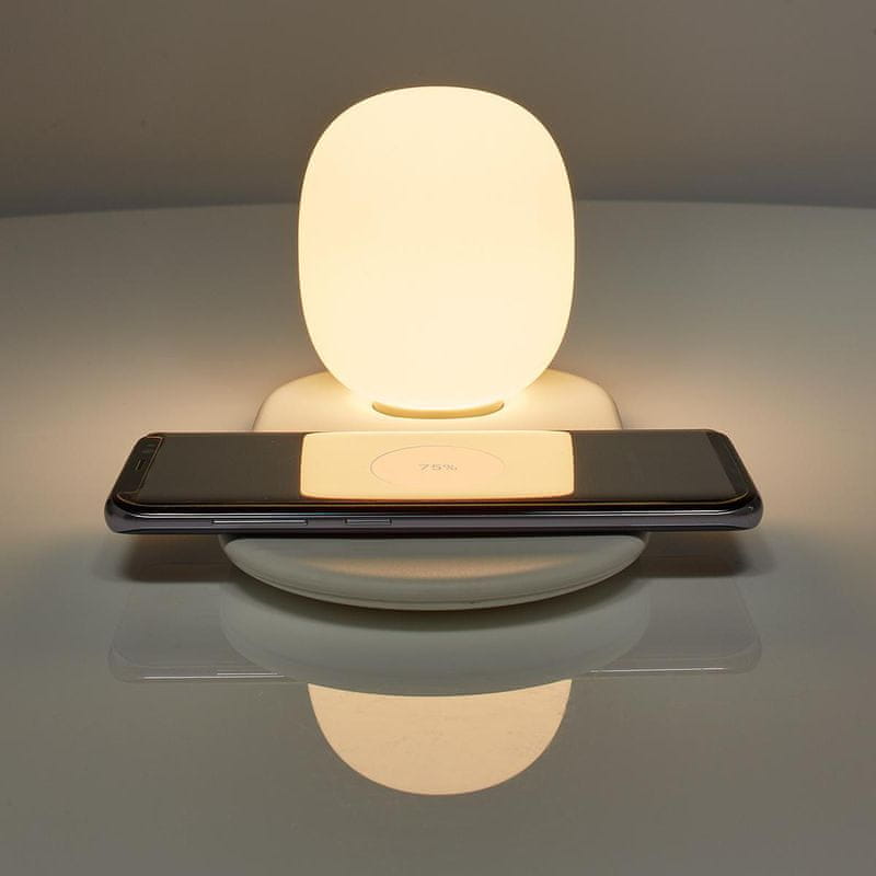 LED svjetiljka s brzim Qi punjačem radi bežično. Jednostavno postavite pametni telefon na podlogu. Svjetiljku možete prigušiti dodirom. Punjač ima LED indikator tako da znate da se vaš pametni telefon zapravo puni, ali je vrlo malen i diskretno postavljen kako ne bi ometao dobar san.