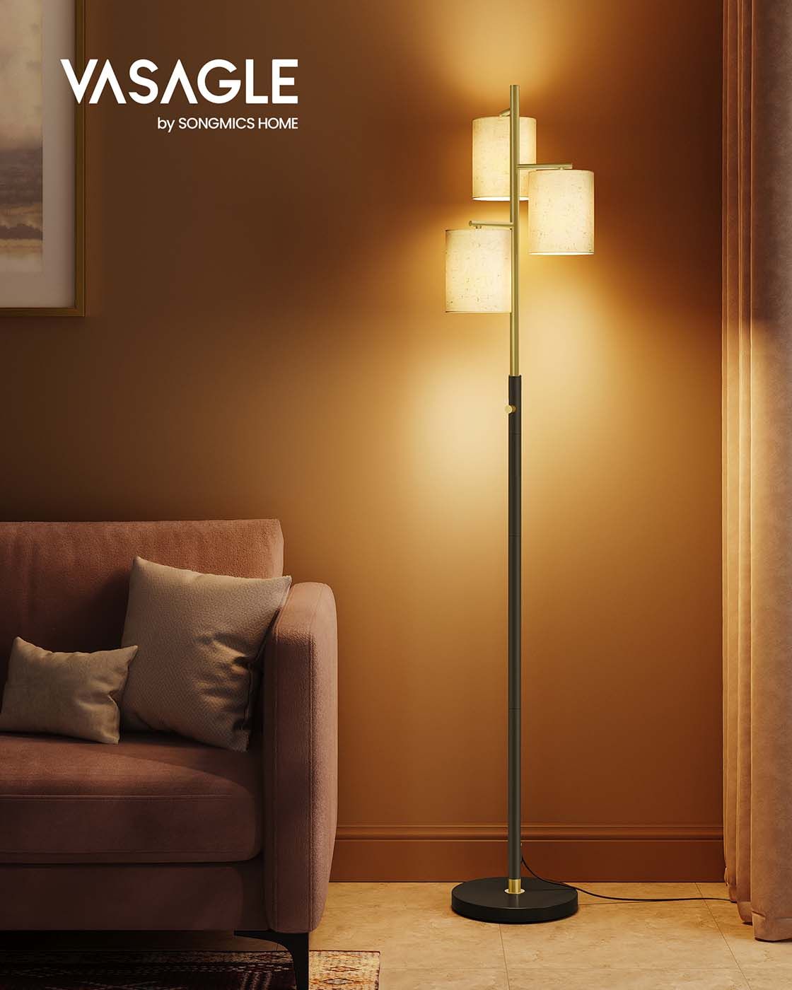 Songmics Podna lampa 29x29x173 cm Zlatna