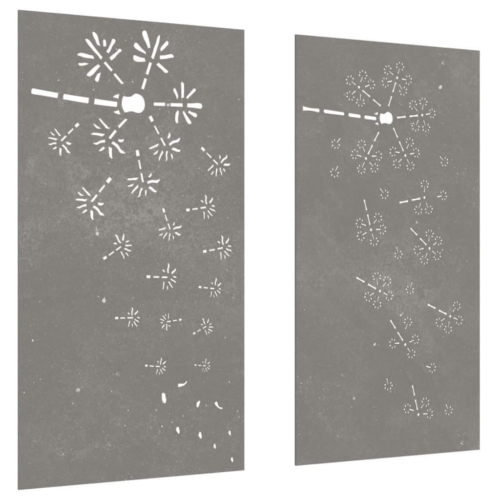 Vidaxl Vrtni zidni ukrasi 2 kom 105x55 cm čelik COR-TEN cvjetni uzorak