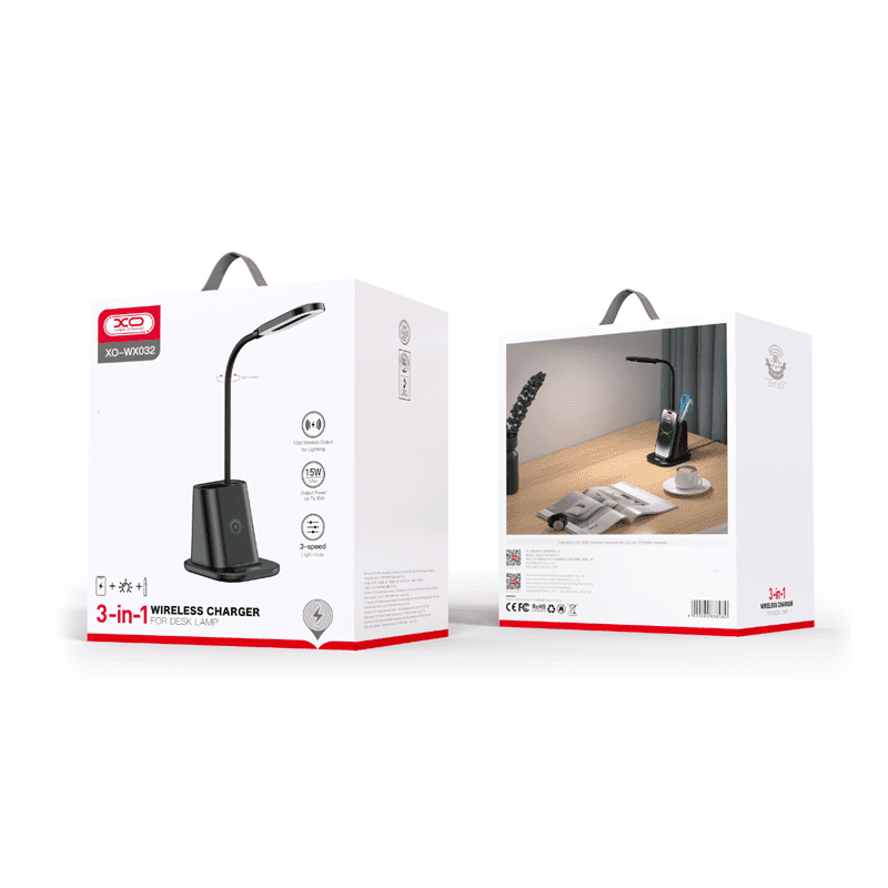 XO WX032 3u1 je bežični induktivni punjač, namijenjen punjenju pametnih telefona s dodatno ugrađenom LED svjetiljkom i posudicom za olovke. Pametni telefon jednostavno stavite na podlogu i punjač će ga automatski početi puniti. Zbog toga je savršen za korištenje kod kuće ili u uredu.
