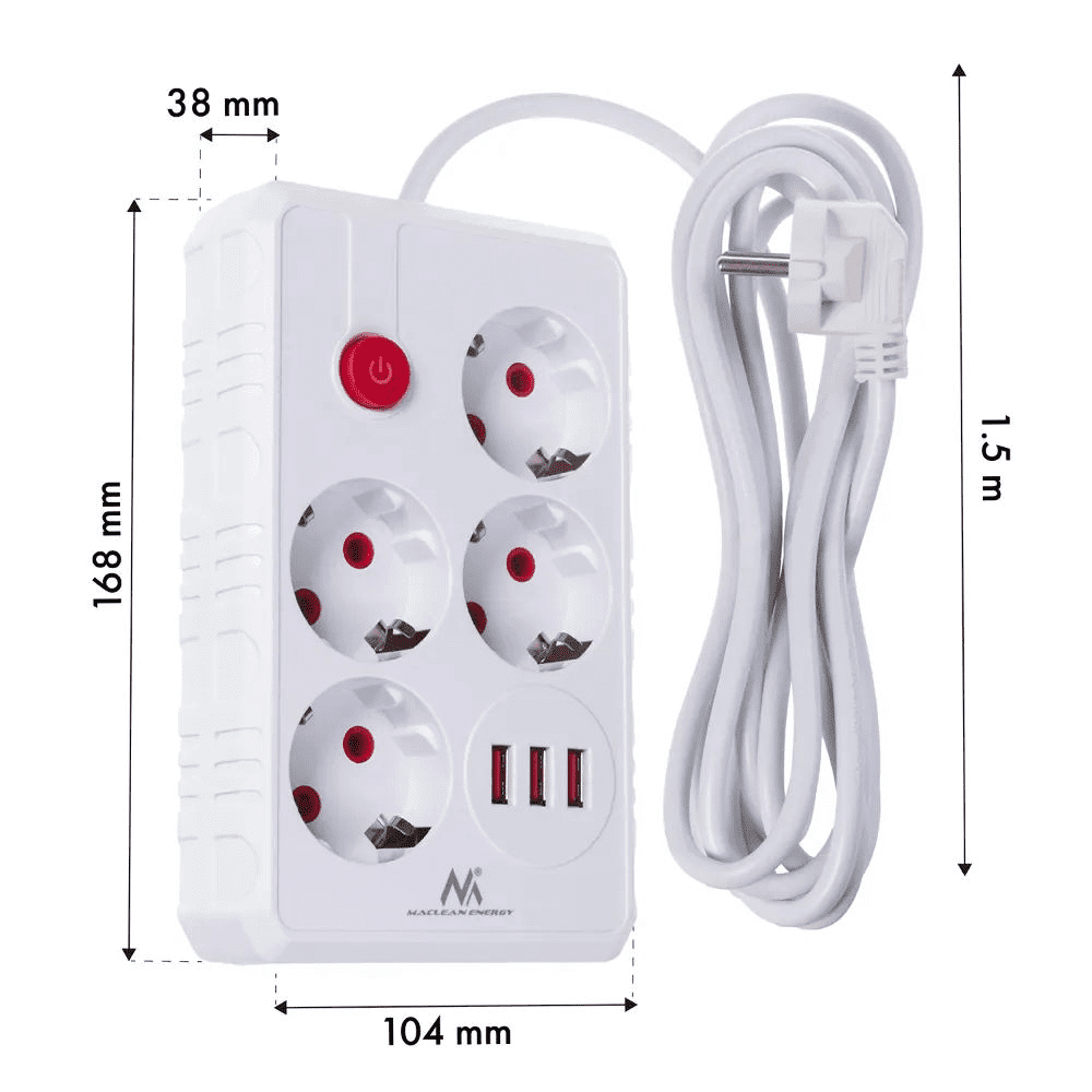 Maclean Produžni razdjelnik MCE392W sa 4 utičnice + 3xUSB, 1.5m, bijeli