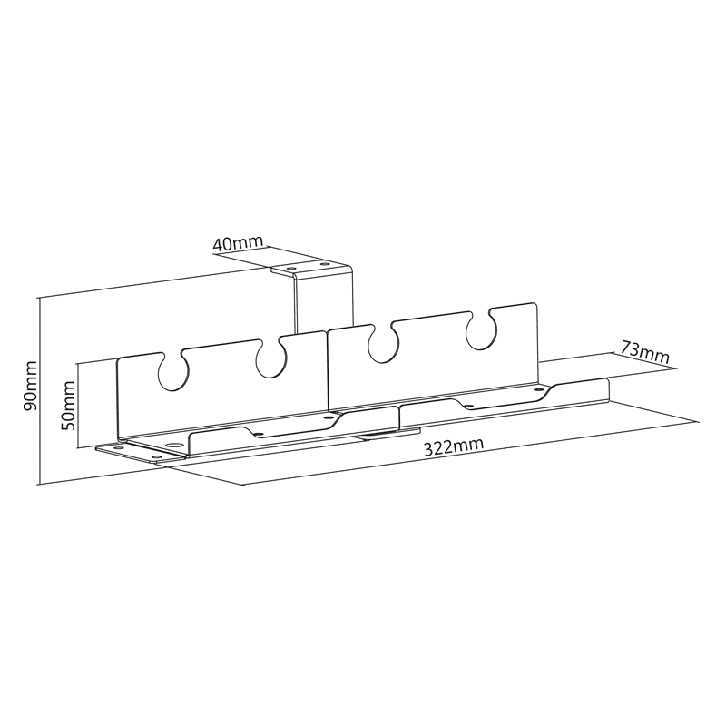 Univerzalni nosač od čeličnog praškasto lakiranog čelika može se lako pričvrstiti ispod većine stolova, čime se pametno skrivaju utičnice i smanjuje nakupljanje kabela ispod stola. Otvor u nosaču pomažu u pravilnom organiziranju kabela.