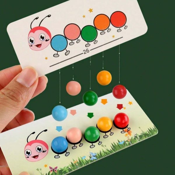 Ovaj set se sastoji od brojnih drvenih kuglica koje se mogu složiti u niz da se napravi živahna gusjenica.