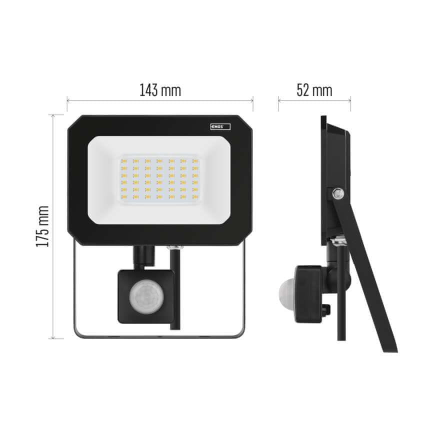 EMOS ZS2333 Simpo Pir LED reflektor, 30 W, neutralno bijela, crna