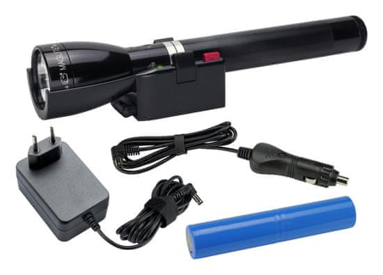 Svjetiljka marke Maglite ima 1082 lumena, svjetlosni snop od 450 m, 3 radna intenziteta, uključenu punjivu bateriju i punjač od 12 V. Otporna je na kišu i pad s nižih visina.