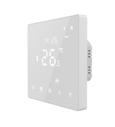 Pametni sobni termostat, 16A, WiFi, upravljanje pametnim telefonom, zaslon osjetljiv na dodir, podešavanje temperature u rasponu od 10 °C – 30 °C, koristi se za upravljanje: sustavom grijanja, bojlerom, bojlerom i drugim uređajima, mobilna aplikacija Tuya Smart / Smart Life.