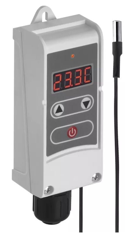 Ručni žičani termostat P5684 može se spojiti na sustav grijanja i klima uređaj. Omogućuje vam podešavanje temperature između 5 °C i 90 °C, a također se može pohvaliti jednostavnim rukovanjem i osvijetljenim zaslonom s velikim brojevima.