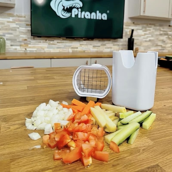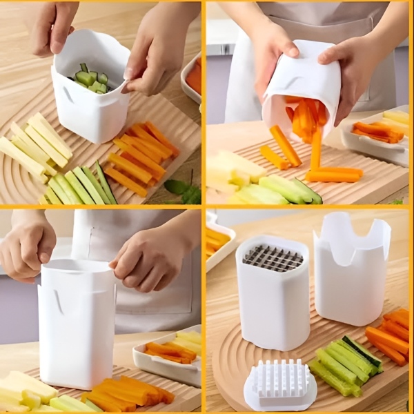 Kuhinjski alat CHOPZY nije samo za pomfrit; to je svestrani sjeckalica za povrće koja obrađuje razne namirnice poput mrkve, krastavaca i luka, olakšavajući pripremu obroka.