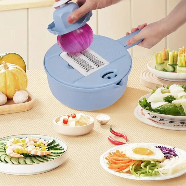 Od odvajanja jaja do rezanja povrća, dizajn 12-u-1 rješava gotovo svaki izazov pripreme hrane. Dostupan u elegantnim plavim i ružičastim bojama kako bi odgovarao vašem kuhinjskom dekoru.