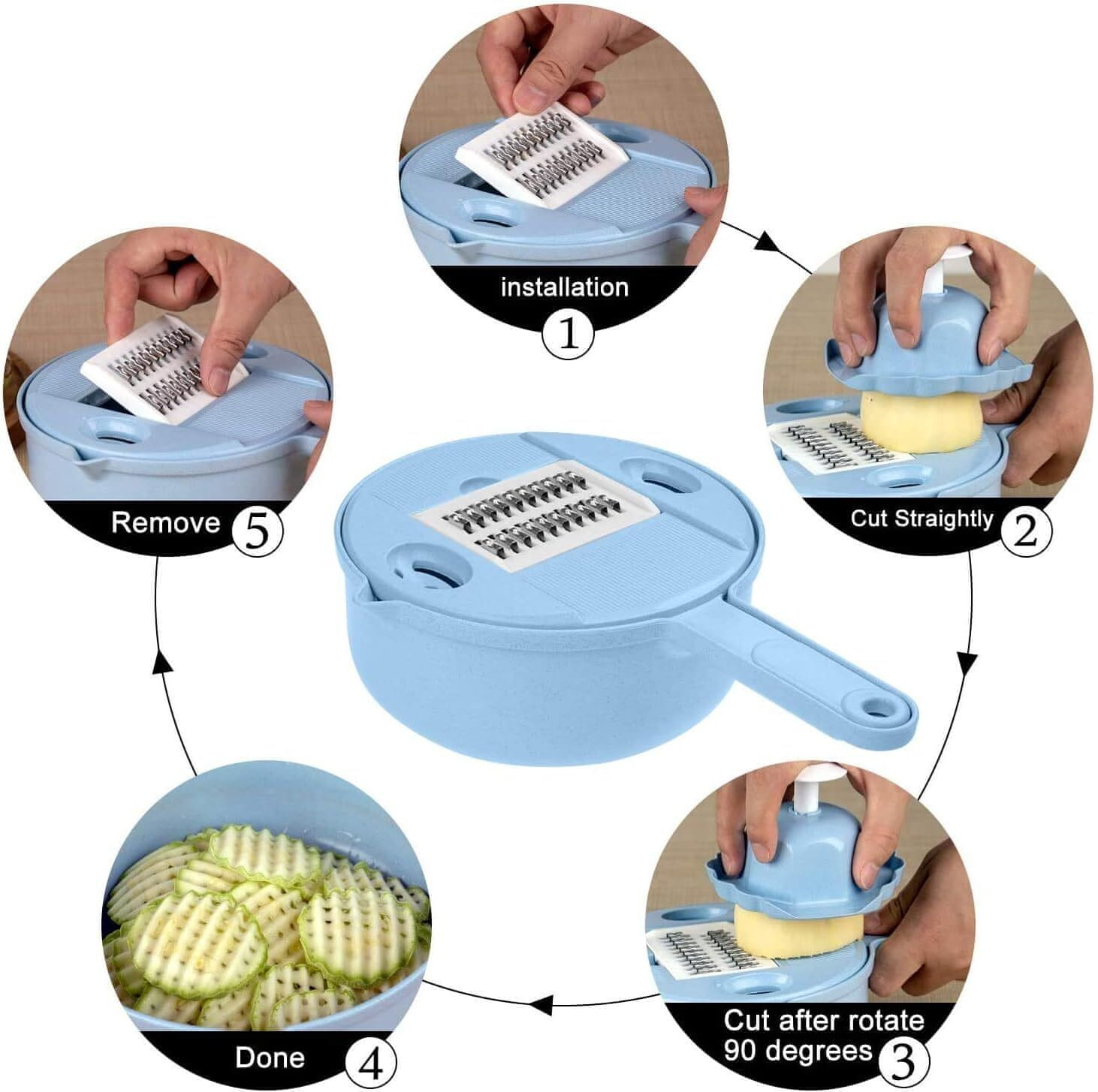 S izmjenjivim oštricama, ovaj svestrani rezač čini pripremu obroka jednostavnom i osigurava preciznost na razini profesionalnog kuhara. Postignite savršene, ujednačene rezultate svaki put!