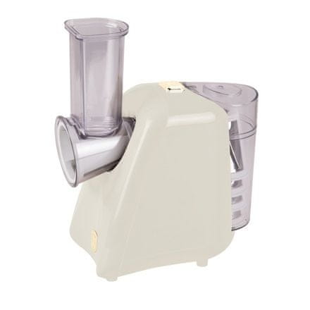 Ovaj električni ribež za povrće u elegantnoj krem ??boji nezamjenjiv je pomoćnik za brzu i praktičnu pripremu raznih jela. Zahvaljujući pet vrsta nastavaka, lako može rezati i ribati povrće, voće, sir i druge sastojke. Kompaktan dizajn, jednostavno upravljanje jednim dodirom i lako održavanje čine ga idealnim kuhinjskim aparatom za svakodnevnu upotrebu.