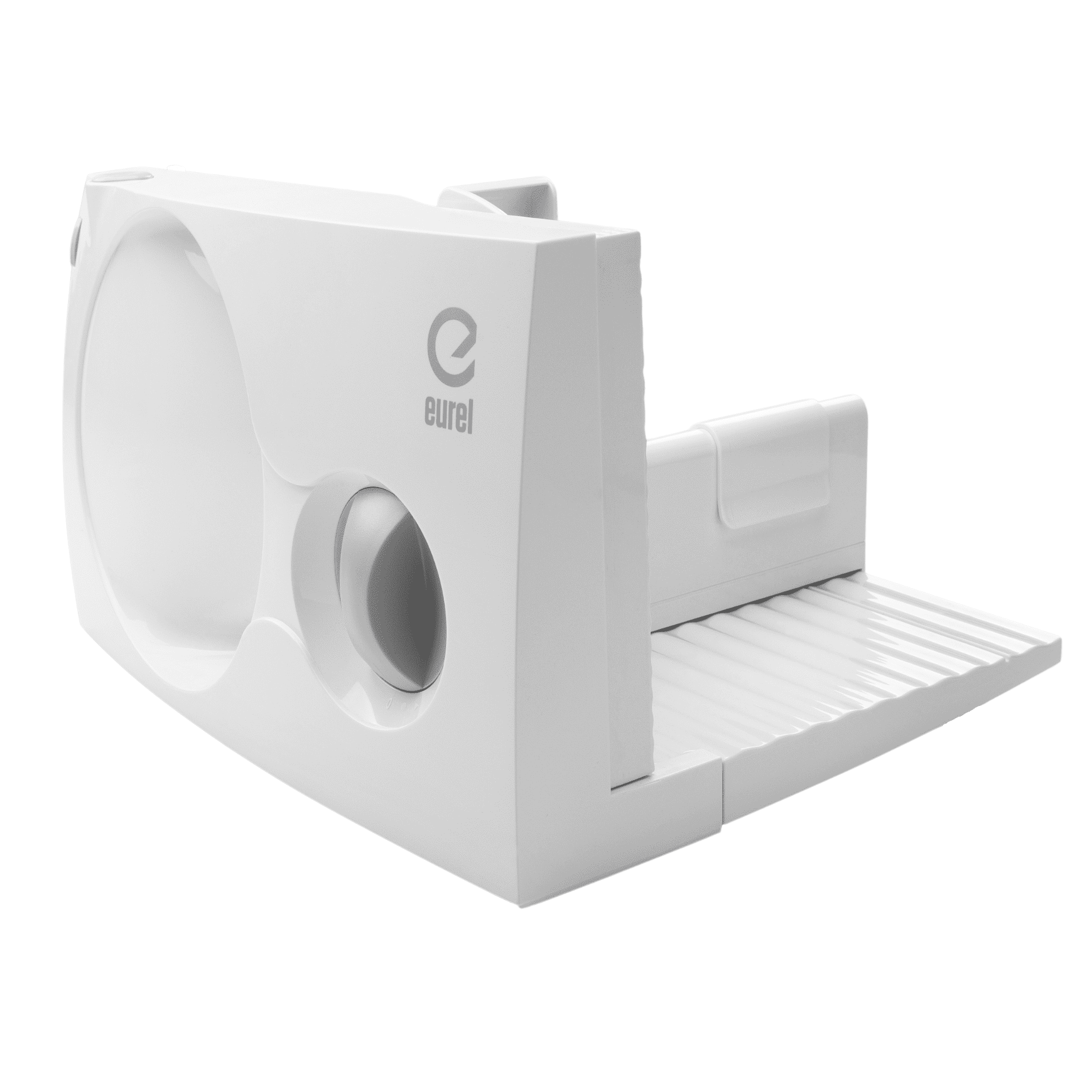 EUREL-ove rezalice odlikuje velika radna površina pogodna za rezanje i manjih i većih komada hrane. Kotačićem možete jednostavno podešavati debljinu reza od 0 do 17 mm.