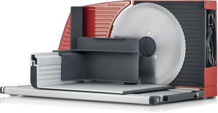 Ovaj rezač je odličan izbor za manje kuhinje ili za situacije kada vam je potreban pouzdan pomagač za rezanje suhomesnatih proizvoda, kruha, sira ili povrća, ali ne želite zatrpavati pult velikim profesionalnim strojem. Njegov sklopivi dizajn omogućuje jednostavno skladištenje, metalno tijelo pruža veću izdržljivost, a podesiva debljina rezanja daje vam veću fleksibilnost.