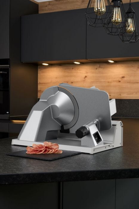 - Glatka, okrugla oštrica promjera 19 cm omogućuje ravnomjerno rezanje šunke, kobasica, kruha i drugih namirnica.