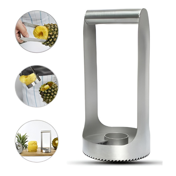 Uživajte u savršeno narezanom ananasu u nekoliko sekundi uz PINECUT rezač! Izrađen od nehrđajućeg čelika, lako reže, čisti i guli bez nereda. Jednostavno okrenite i uživajte u svježem voću — brzo, čisto i bez muke!