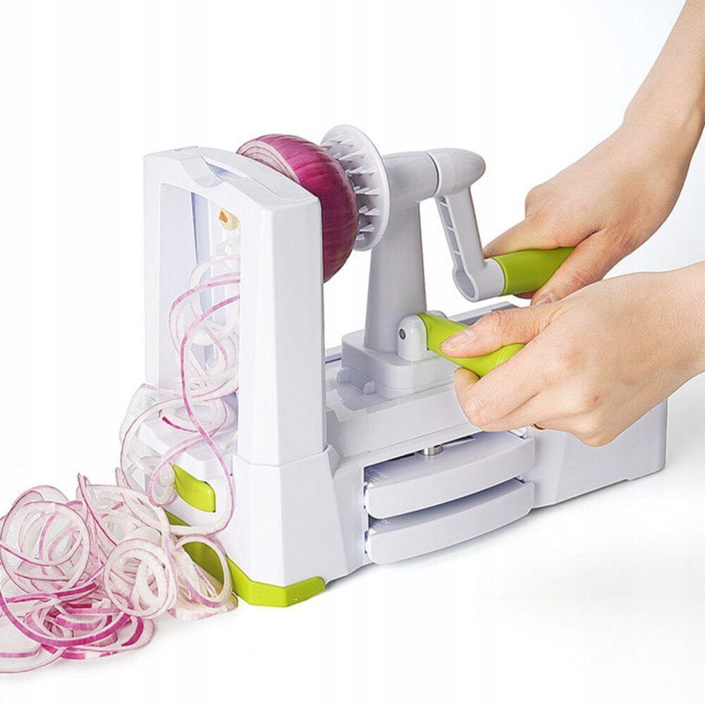 S našim spiralnim rezačem možete precizno i ravnomjerno obraditi povrće i voće na različite načine. Prilagodljive oštrice omogućuju podešavanje oblika i debljine prema vašim željama – od tankih kriški za salate do ukrasnih spiralnih oblika.Svojstva: