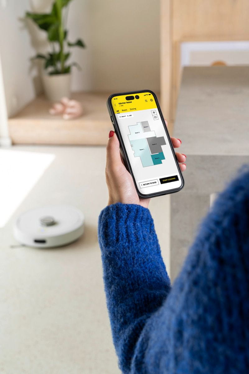 Kao njemački proizvođač, Kärcher posvećuje posebnu pozornost zaštiti podataka. Sav promet između aplikacije i robota odvija se putem oblaka sa serverima koji se nalaze isključivo u Njemačkoj . Osim sigurnosti, aplikacija nudi potpunu kontrolu : od postavljanja rasporeda čišćenja do praćenja napretka u stvarnom vremenu. Ako robotu treba vaša pomoć, diskretno će vas obavijestiti glasovnim uputama, a senzori pada spriječit će nezgode na stepenicama.