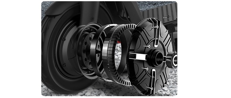 Kotači od 10 inča s ugrađenim unutarnjim zračnicama pružaju ESC910 visoku razinu udobnosti vožnje i omogućuju lako kretanje po najrazličitijim površinama. ESC910 romobil dizajniran je da apsorbira manje udarce i vibracije uzrokovane vožnjom po neravnim površinama, pa se može voziti po pločnicima i asfaltu, kao i po dobro održavanim šljunčanim cestama. Veliki kotači od 10 inča pružaju povoljnu udaljenost romobila od tla, pa vožnja preko malih rubnika neće biti problem.